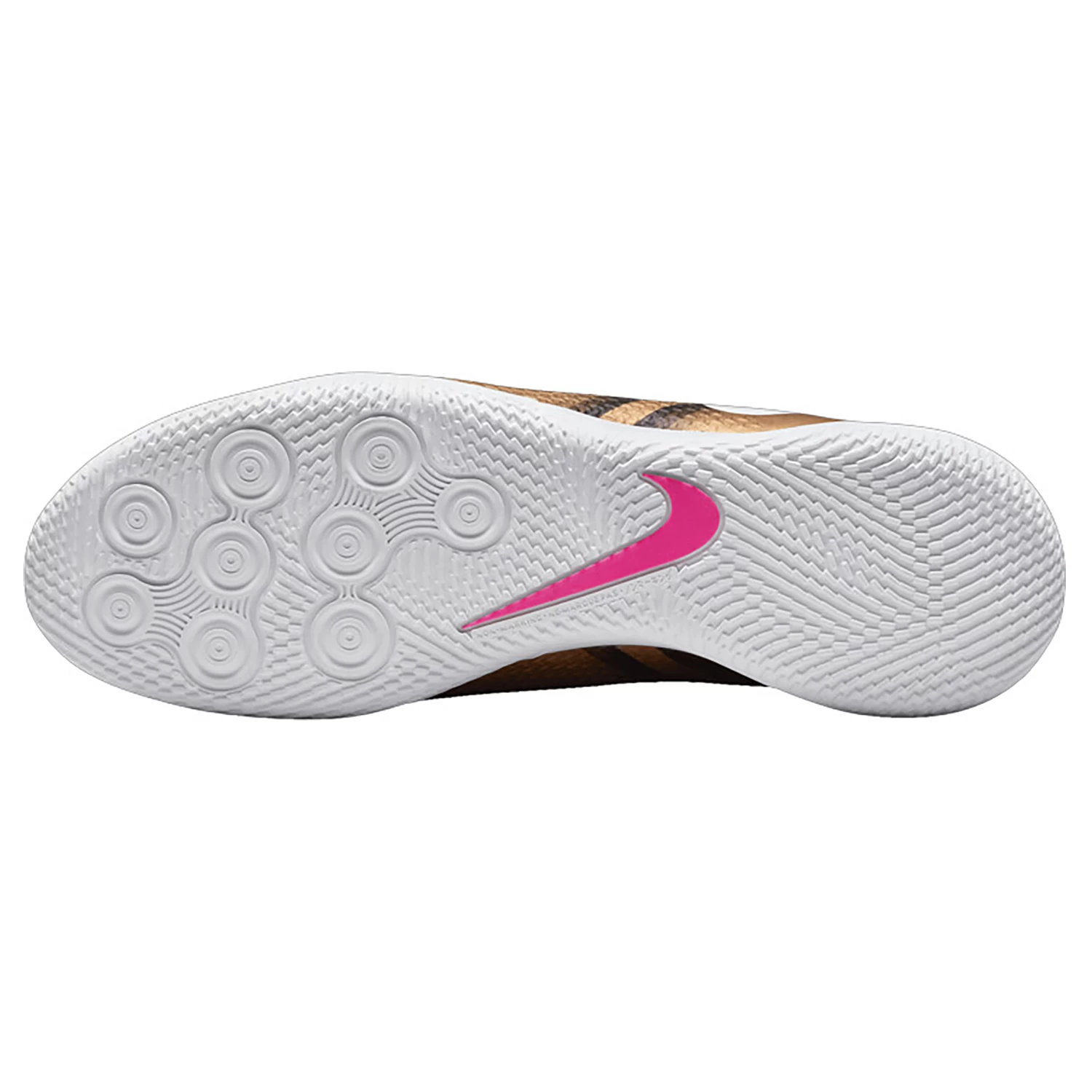 Mit dem Phantom GT2 Academy bekommst du den perfekten Schuh für dein Spiel. Die neue Farbe des Phantom GT2 Academy IC ist in einem gold-schwarz mit pinken Akzenten gehalten. Er wurde für kraftvolle Präzision bei deinen Aktionen im Spiel oder im Training entworfen. Entdecke ein neues Level an Präzision und mache dich bereit für deine nächsten Angriffe mit dem neuen Phantom von Nike. Mit der asymmetrischen Schnürung bekommst du mehr Kontrollfläche für deine Ballführung und deine Abschlüsse. Bei Ballkontakt zwischen der durchgehenden 3-D-Struktur und dem Ball wird Reibung erzeugt, die dir somit mehr Ballkontrolle gibt. Die Phantom-Reihe von Nike begeistert Spieler auf der ganzen Welt. Auch Superstar Kai Havertz vertraut auf die optimale Verarbeitung und die vielen Features, die dem Träger die optimale Performance sichern. Gleichzeitig gibt dir die konische Stollenanordnung die Möglichkeit eine 360 Grad Rotationstraktion für Wendigkeit und schnelle Richtungswechsel überall auf dem Spielfeld. Sichere dir deinen Phantom GT2 Academy IC auf Sporthaus-Marquardt.de.